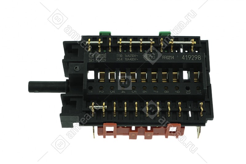 Переключатель режимов духовки Gorenje с партномером 419298 (12-позиционный, 11 рабочих позиций + 0) совместим с широким модельным рядом электрических и комбинированных плит серий E, EC, EI и K.