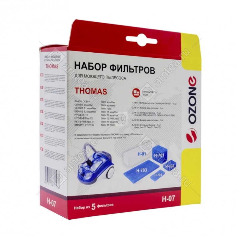 Набор фильтров для пылесоса THOMAS, НЕРА фильтр-1 шт., микрофильтр-4 шт., бренд: OZONE, арт. H-07, тип оригинального набора фильтров: 787203